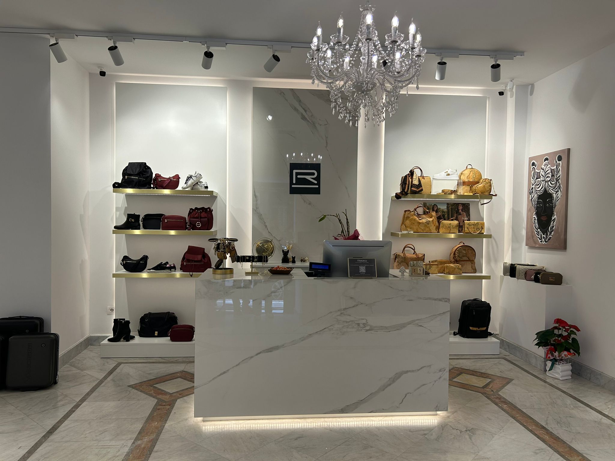 Un ambiente luminoso, sofisticato, con luci che valorizzano ogni prodotto, pavimenti in marmo, espositori moderni e raffinati, e chandelier che donano un tocco di classe senza tempo. Ogni angolo del negozio è stato pensato per accogliere, ispirare e far sentire ogni cliente protagonista del proprio stile.